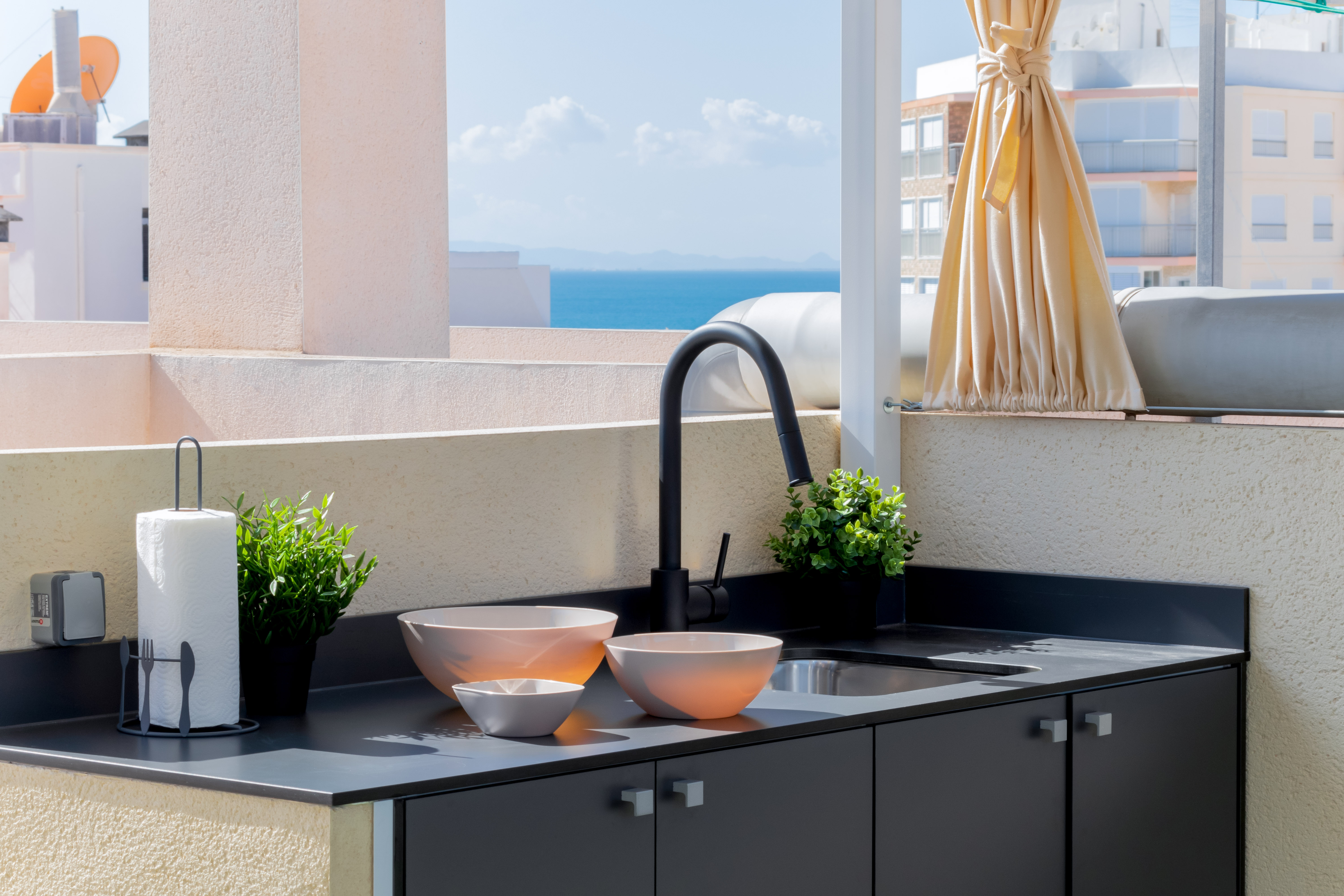 Огромная терасса с мини кухней, зоной отдыха и барбекю